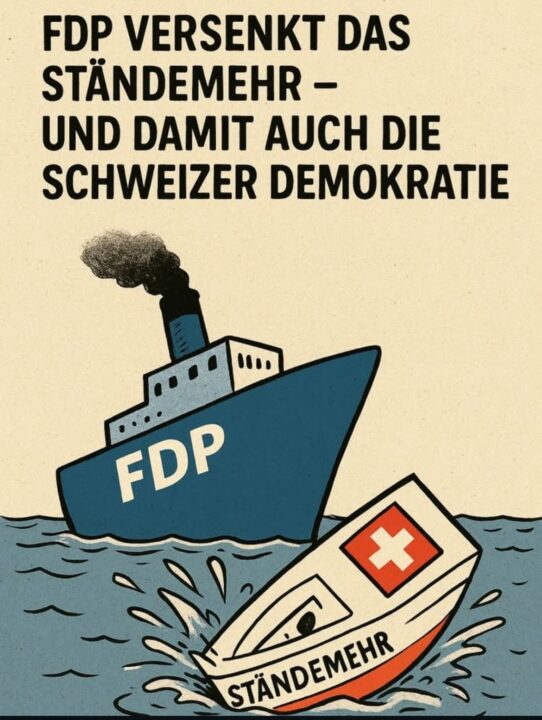 Das Nein zum Ständemehr der FDP ist die definitive Abkehr der föderalistischen Grundwerte, was ein Kernelement der bürgerlichen Politik in der Schweiz darstellt. Die EU-Turbos der FDP konnten sich an der Delegiertenversammlung durchsetzen und haben sich gegen eine Politik FÜR die Schweiz entschieden. Diese Abkehr erschüttert das Vertrauen konservativer Wählerinnen und Wähler. Mit dieser Kehrtwende dürfte die FDP sich schwer tun, von der SVP als bürgerlicher Partner noch wahrgenommen zu werden.